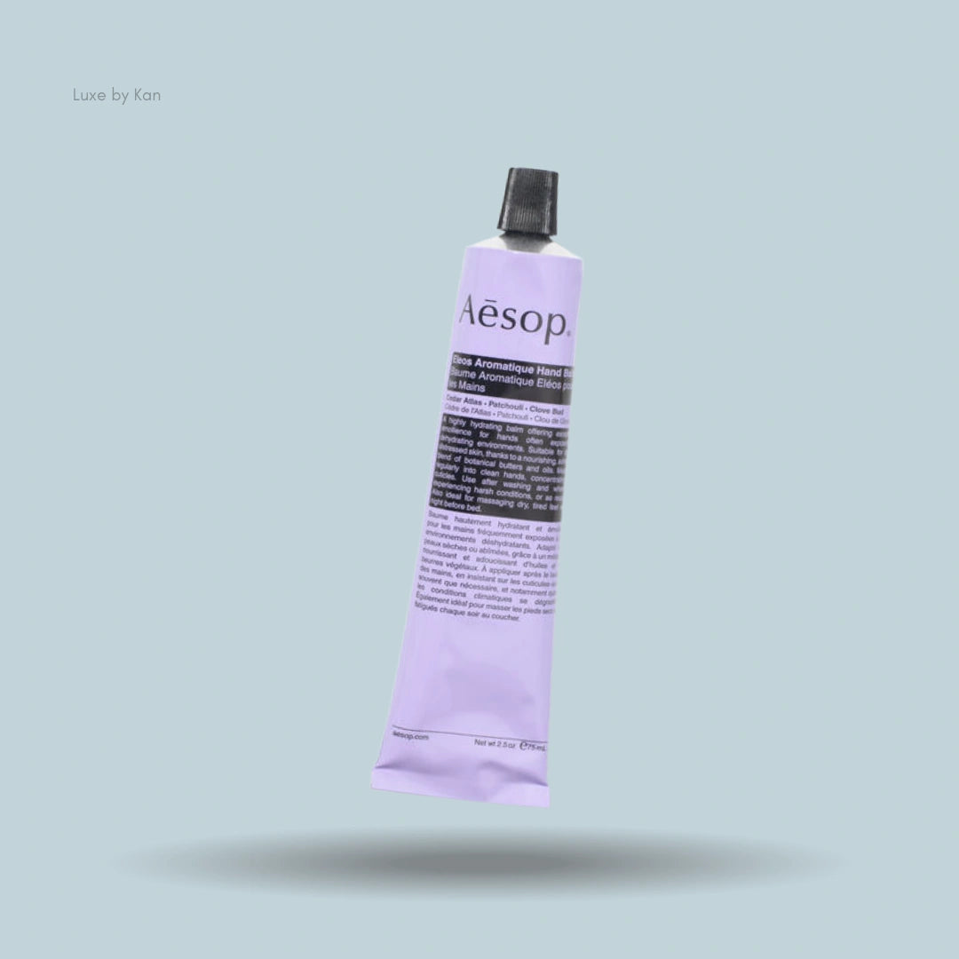 Aesop Eleos Aromatique Hand Balm offers intense hydration for hands that endure frequent exposure to drying environments or are simply in need of extra care. Designed specifically for hardworking, dry, or distressed hands, this richly moisturising balm helps soothe and soften the skin.