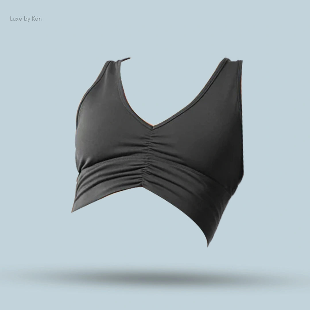 The Wild Thing Bra offers a bold, supportive fit with a sleek, sculpted design. Made from smooth, moisture-wicking fabric, it features adjustable straps and a flattering neckline for comfort and style. Ideal for medium-impact workouts or layered streetwear looks.