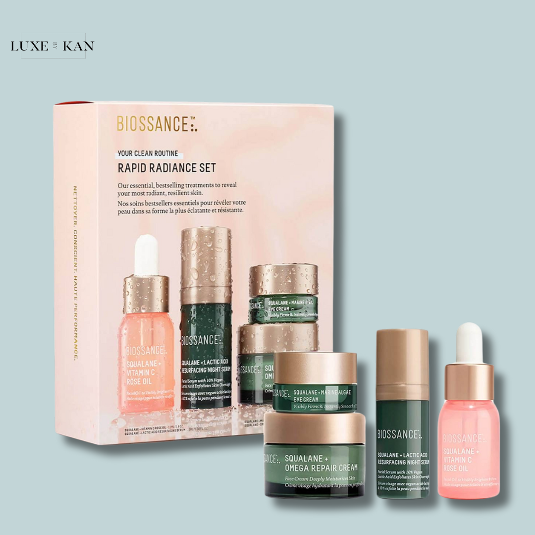 من خلال توحيد الأجزاء ذات الحجم المناسب للتجربة من أربعة خلطات الأكثر مبيعًا، سترسم مجموعة Rapid Radiance من Biossance (3 مل، 10 مل، 15 مل و12 مل) مسارًا جديدًا للبشرة الباهتة؛ نرى بريقاً في الأفق..