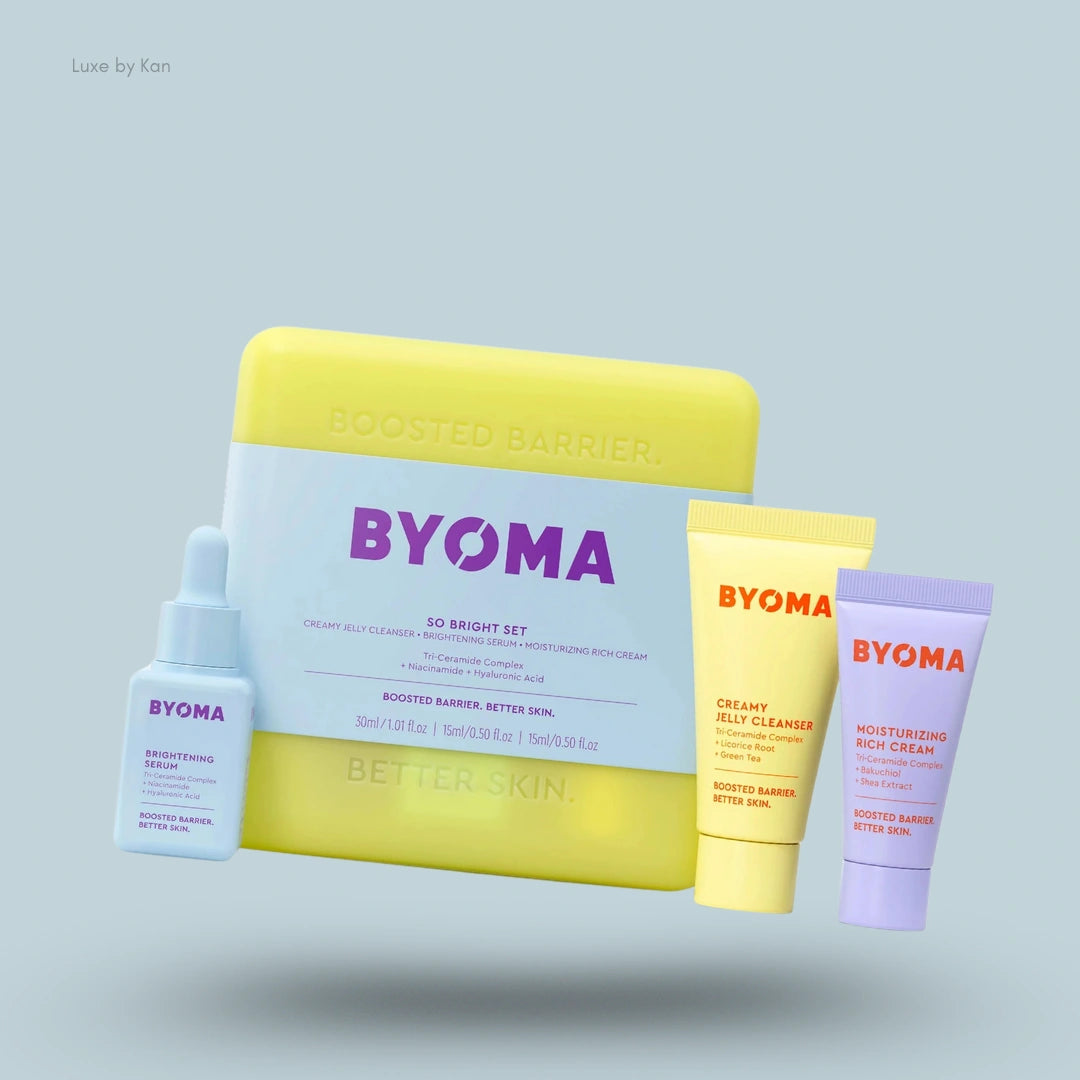 Elevate your skincare regimen with BYOMA’s Brightening Kit and anticipate luminous, glowing skin.