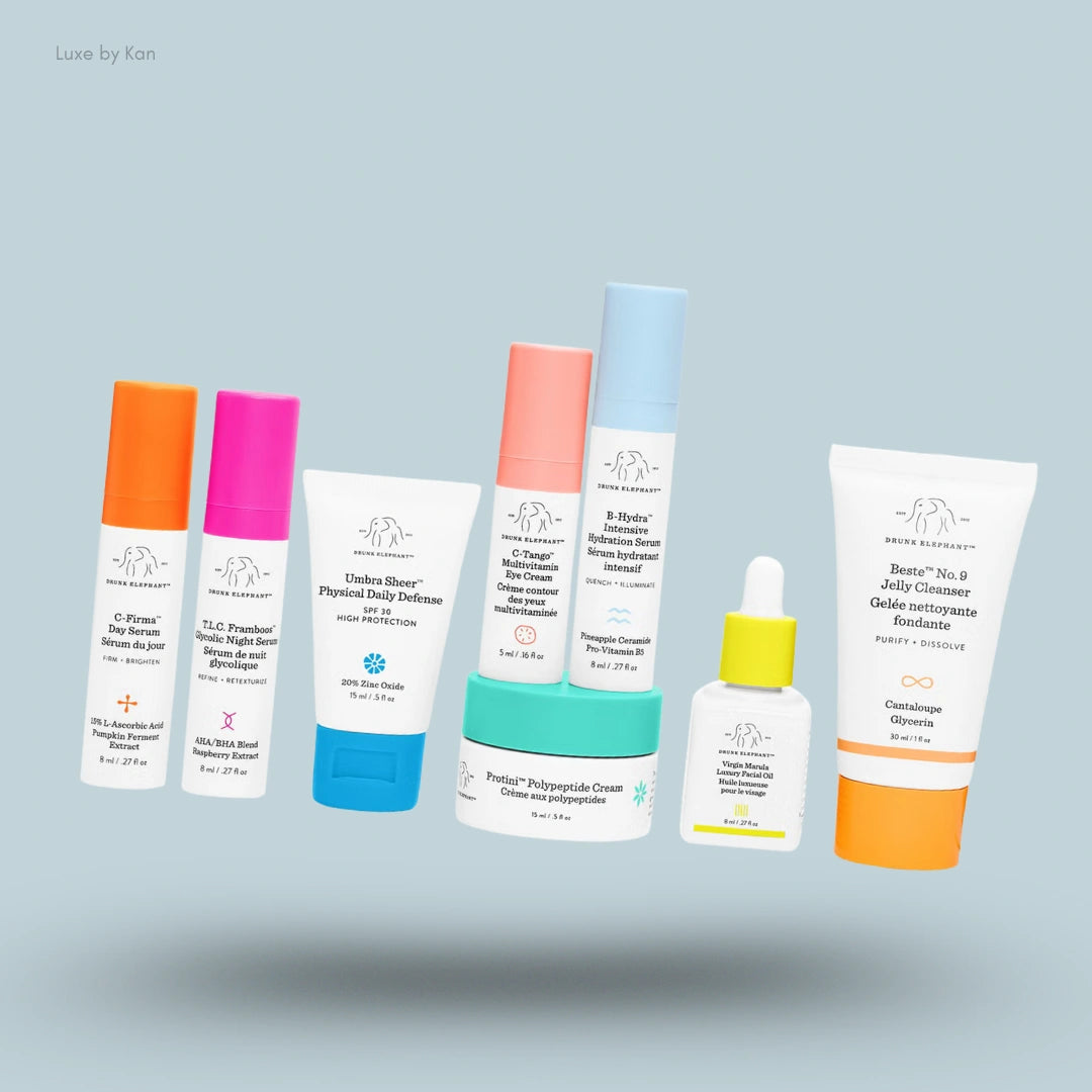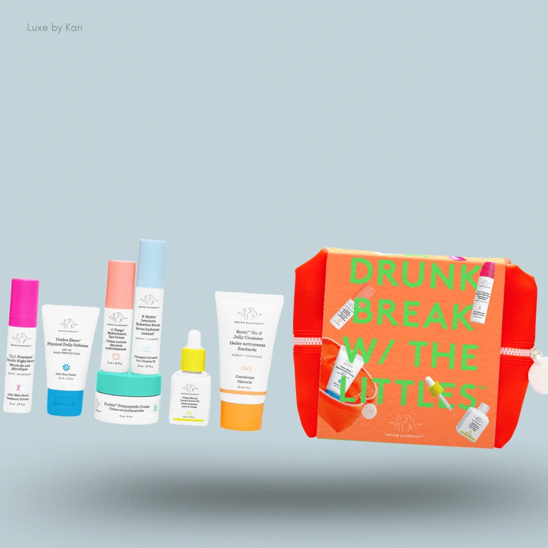 ابدأ هنا لتستمتع باستراحة Drunk Elephant Break™. استخدمي هذه المجموعة حصريًا لإعادة ضبط بشرتك إلى حالة صحية ومتوازنة ومتوهجة.