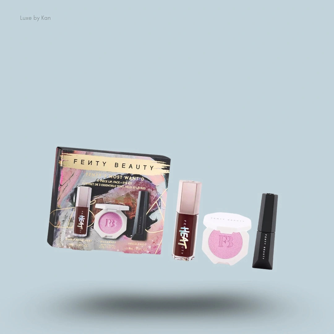 The Fenty Beauty Fenty's Most Wanted Set is your go-to trio for creating hot holiday looks, from plumped lips to radiant cheeks and thick lashes. Perfect for gifting or keeping, this limited-edition set includes Fenty’s iconic products for lips, cheeks, and eyes.