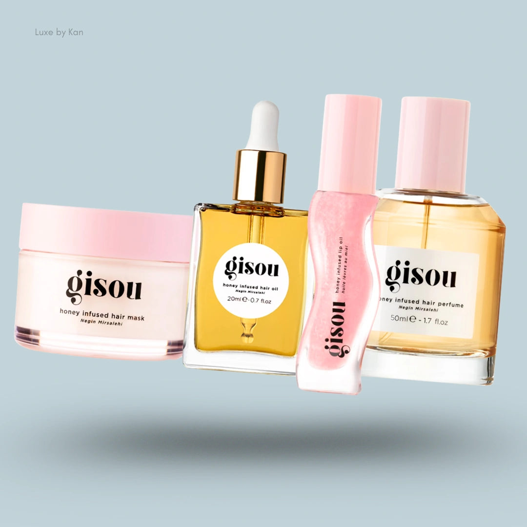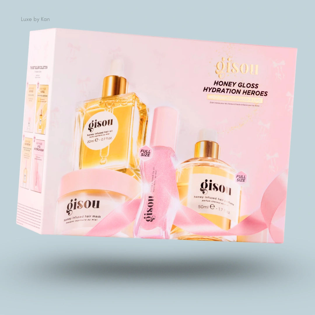 Treat your hair and lips to the ultimate hydration with Gisou's Honey Gloss Hydration Heroes set, a collection of must-haves infused with Mirsalehi honey for intense nourishment and shine.