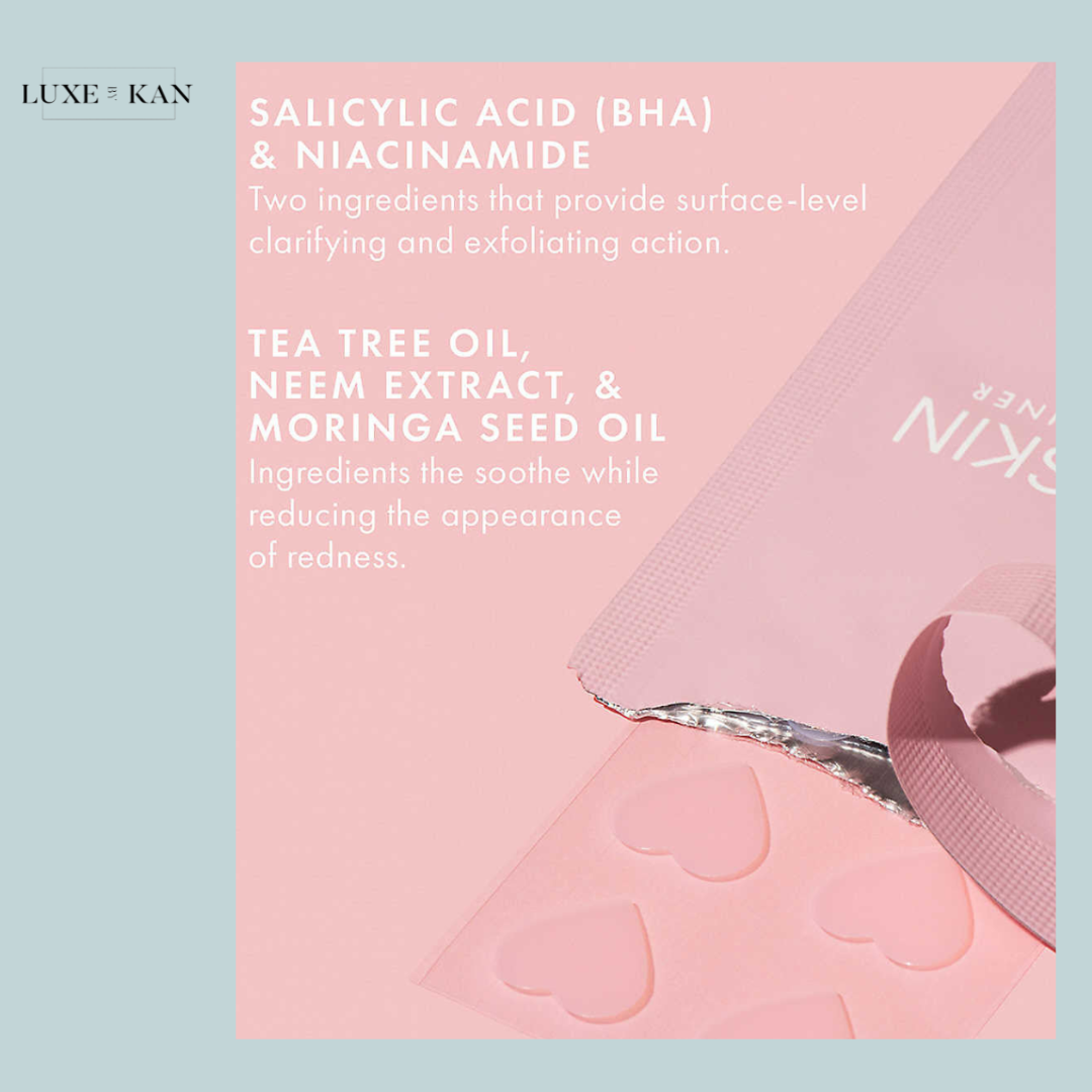 - التطبيق: ضعي رقعة على شكل قلب على بشرة نظيفة وجافة لمدة 8 إلى 10 ساعات للحصول على أفضل النتائج. ثم قم بإزالته للكشف عن بشرة أكثر وضوحًا.