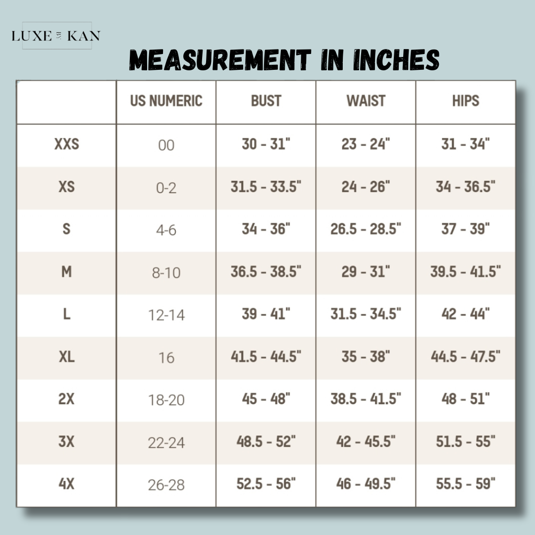 | XS/XS | 2,4,6 | 00,0,2 | 34,36,38 | 30-34.5 | 23.5 - 26 | 31 - 34 |