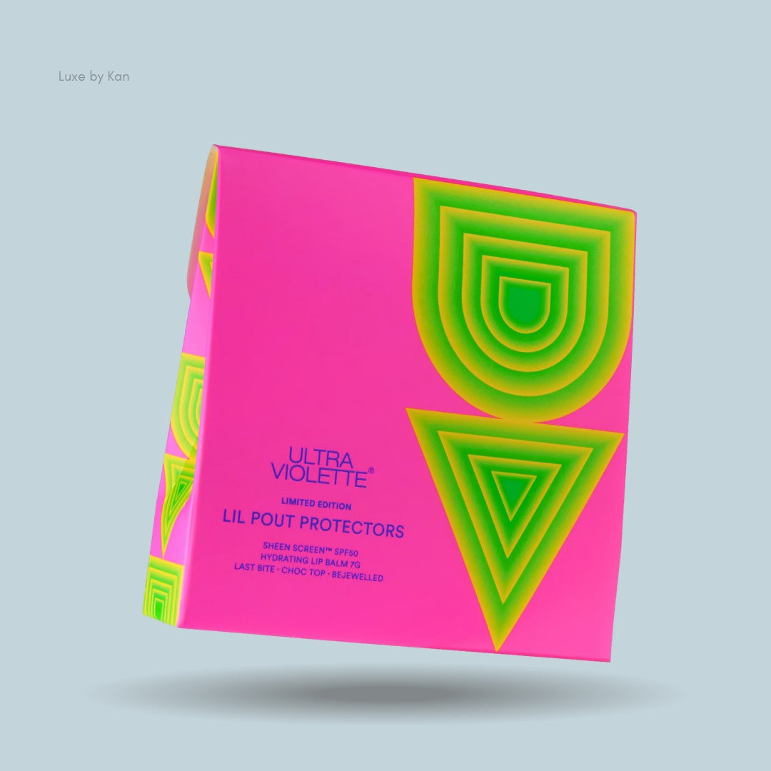 Ultra Violette Lil Pout Protectors offer a trio of mini Sheen Screen™ lip balms designed to shield your lips from sun damage while keeping them soft and hydrated. Ideal for all skin types, this travel-friendly set features three flattering shades—Bejewelled, Choc Top, and Last Bite—each infused with SPF protection to defend against harmful UV rays.
