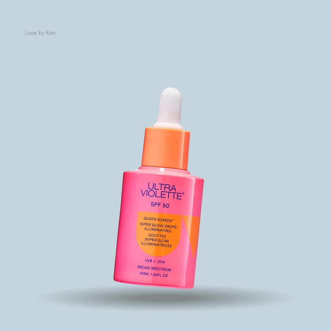 استعدي لحماية البشرة وإضفاء توهج متألق مع قطرات Queen Screen SPF50 Super Glow Drops من Ultra Violette في اللون "المضيء" (30 مل).