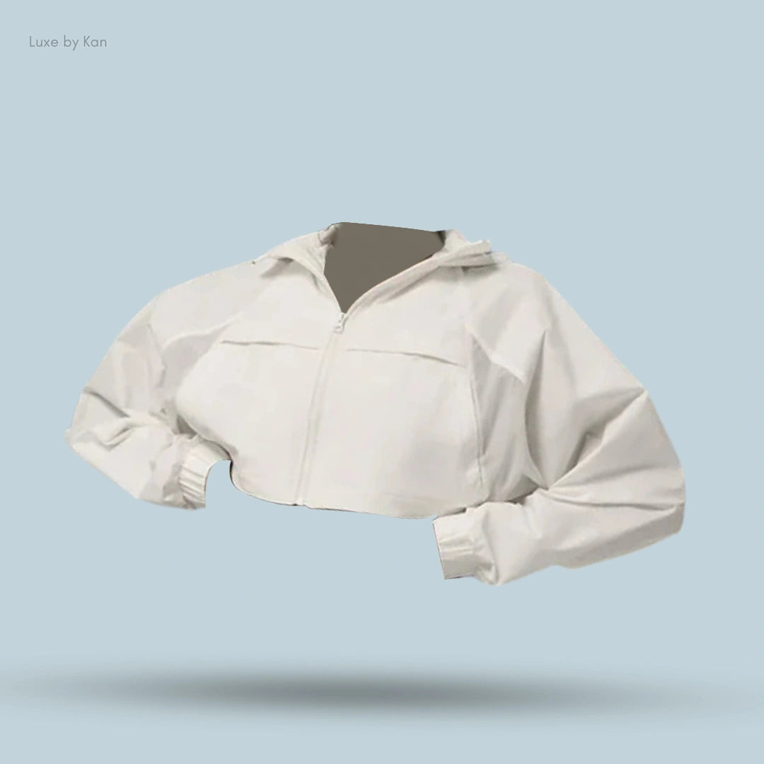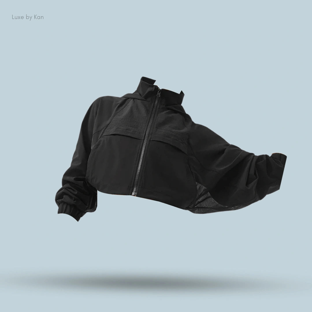 The Cropped Playmaker Jacket combines sporty structure with everyday ease. Made from lightweight, breathable fabric, it features a boxy cropped fit, zip closure, and subtle detailing for a clean finish. Ideal for layering pre- or post-workout, with a modern, relaxed silhouette.