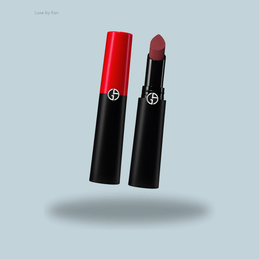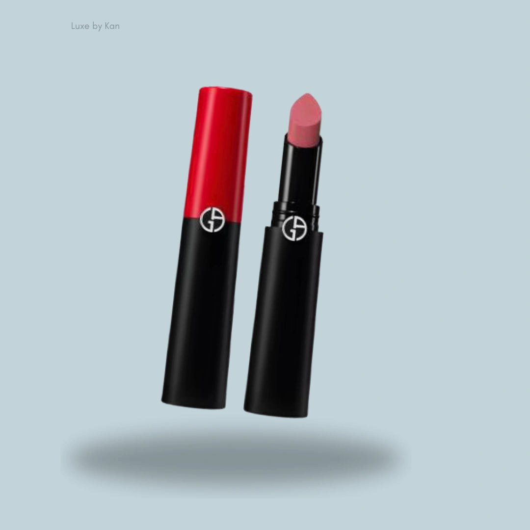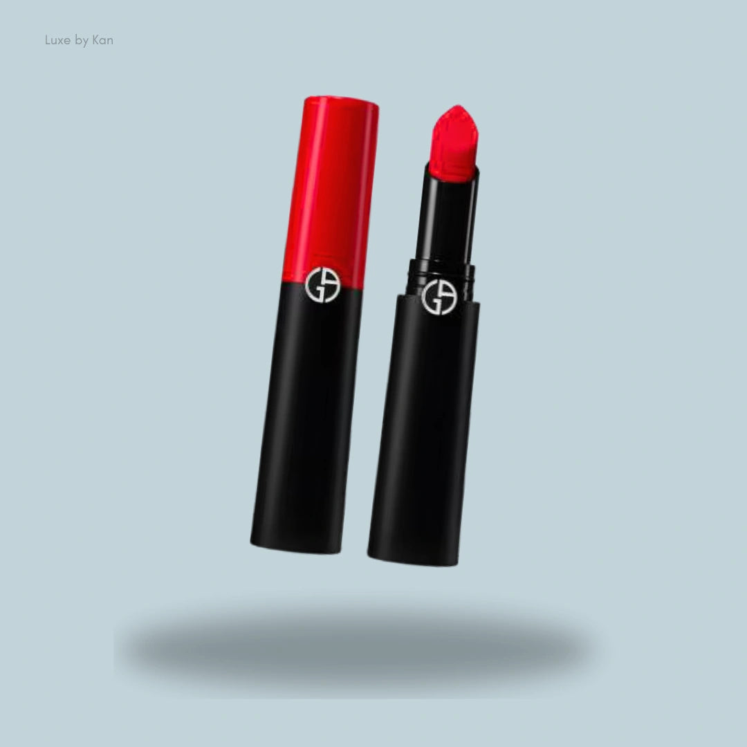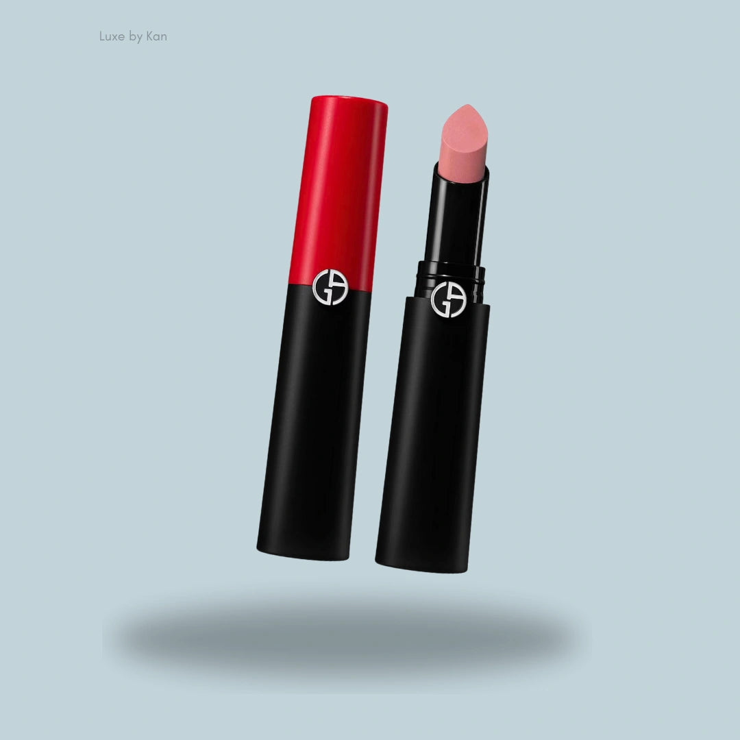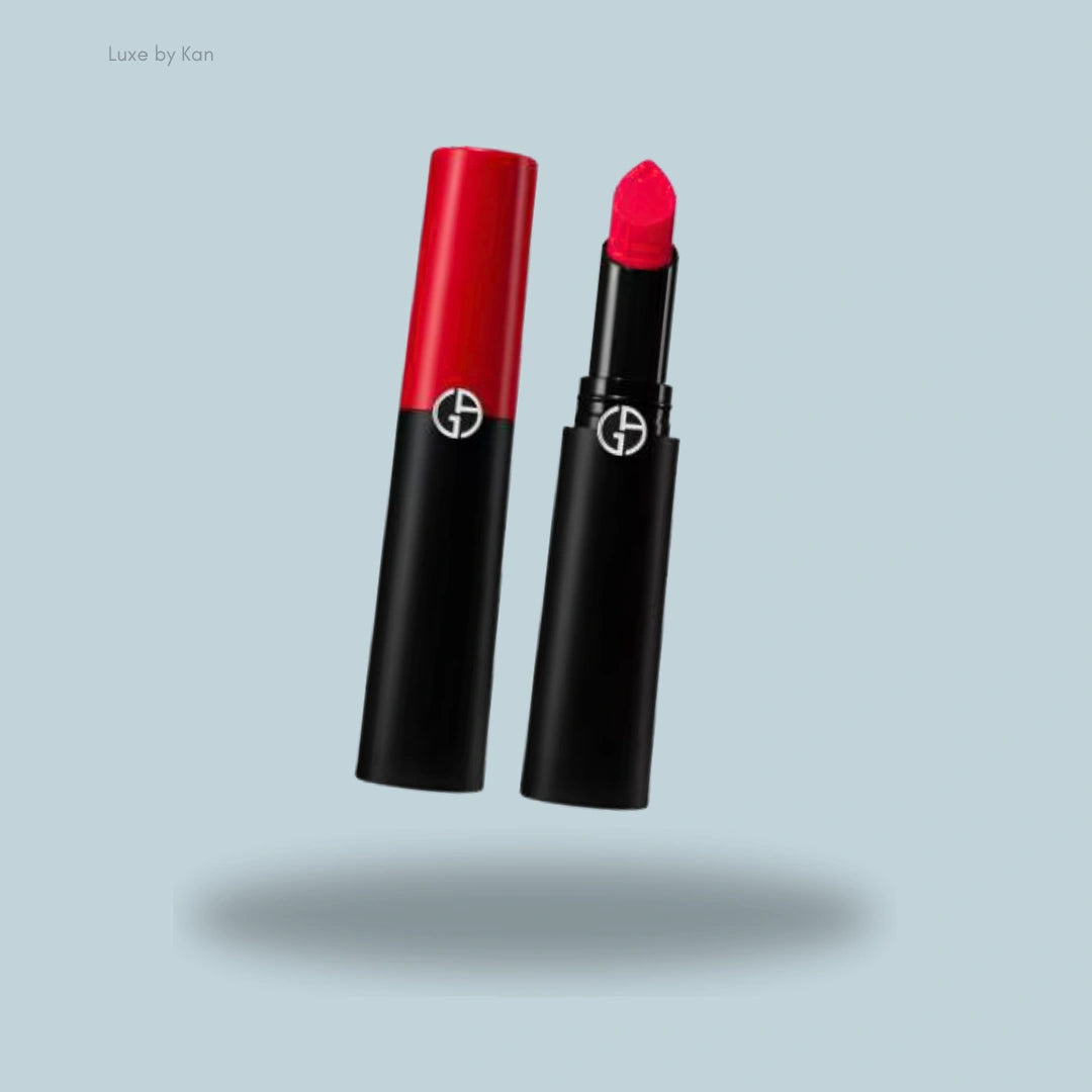 LIP POWER MATTE features a rich palette of up to 17 shades, embodying the signature tones of Giorgio Armani. The lipstick comes in a striking red and black soft matte finish pack with a drop-shaped bullet, allowing for precise, intuitive, and mistake-proof application. The airtight packaging preserves the quality of the formula, ensuring optimal performance.