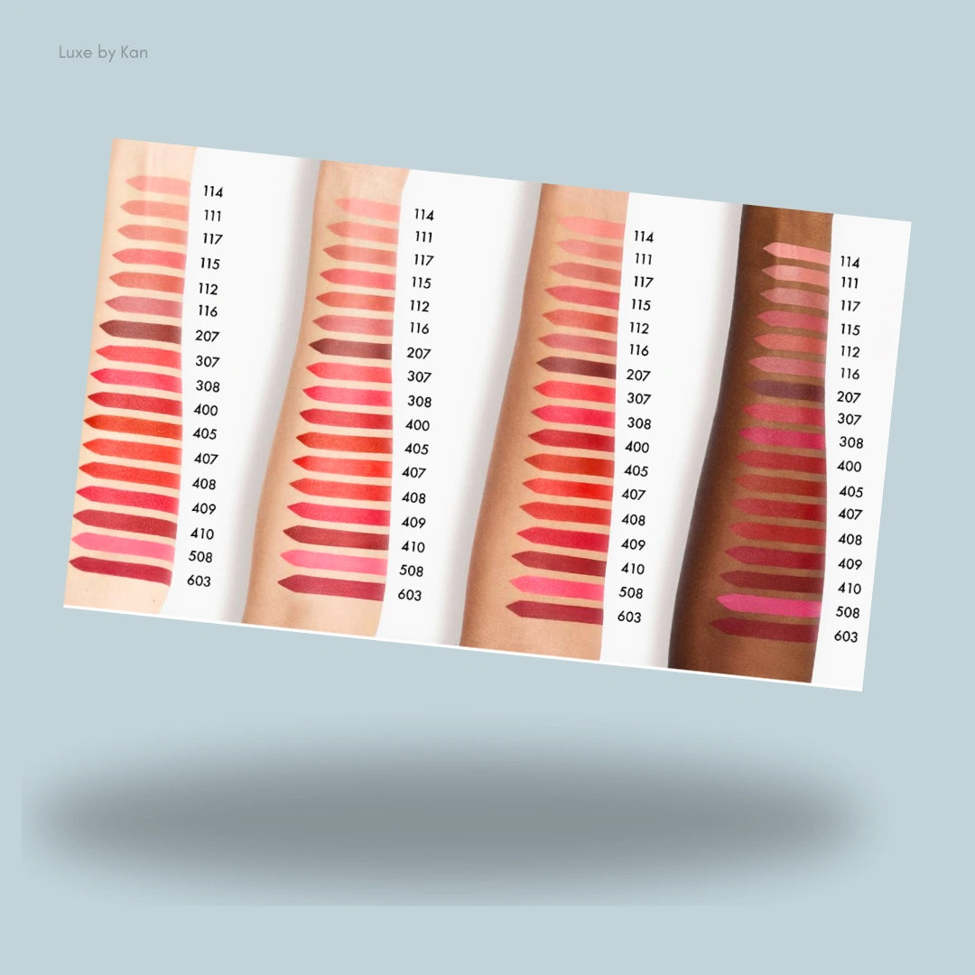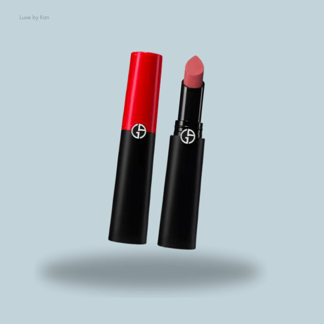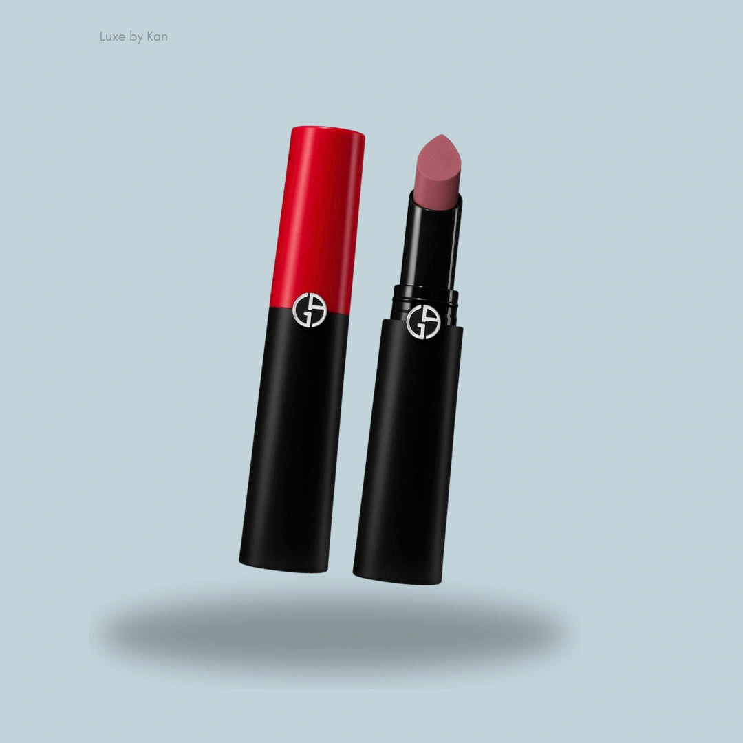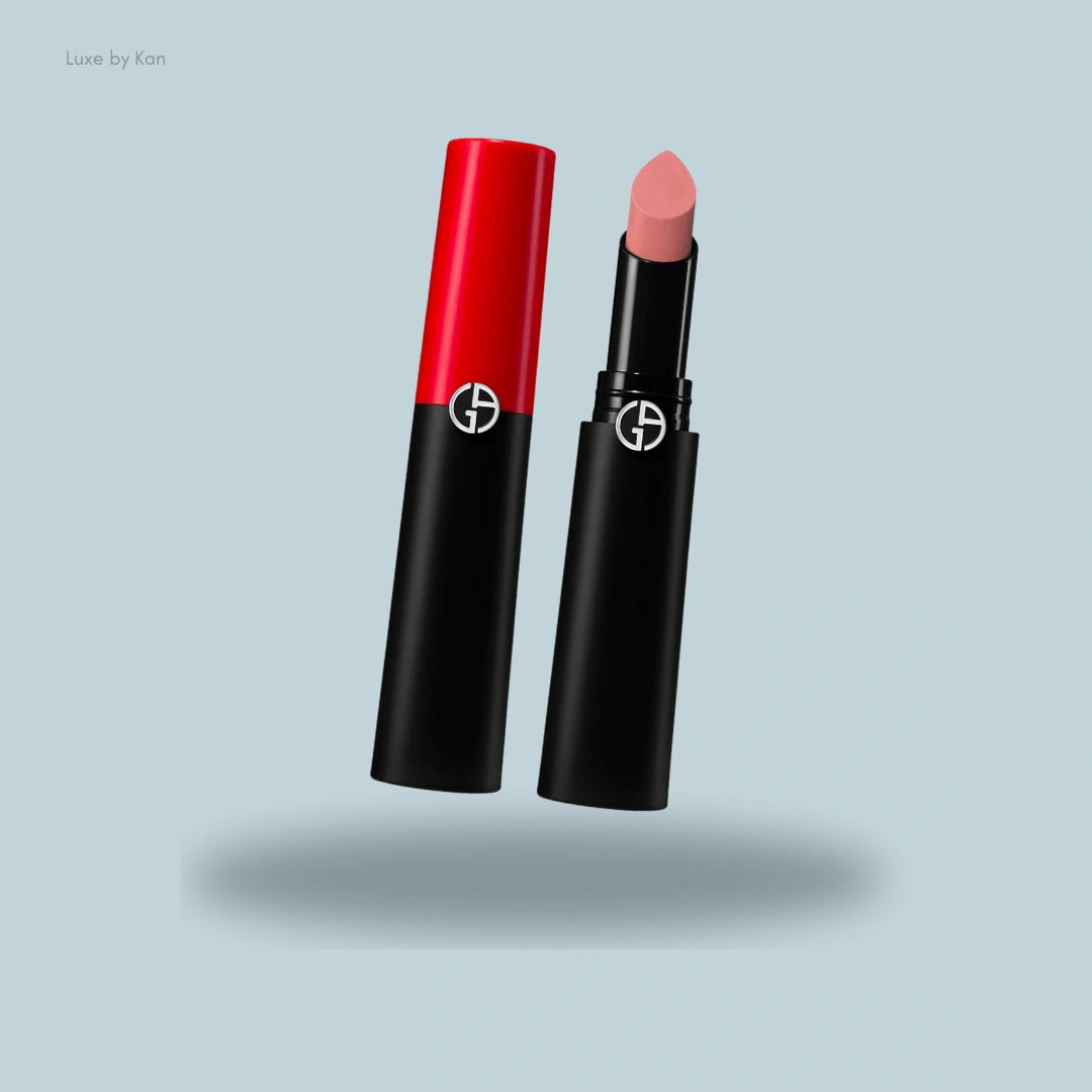 LIP POWER MATTE features a rich palette of up to 17 shades, embodying the signature tones of Giorgio Armani. The lipstick comes in a striking red and black soft matte finish pack with a drop-shaped bullet, allowing for precise, intuitive, and mistake-proof application. The airtight packaging preserves the quality of the formula, ensuring optimal performance.