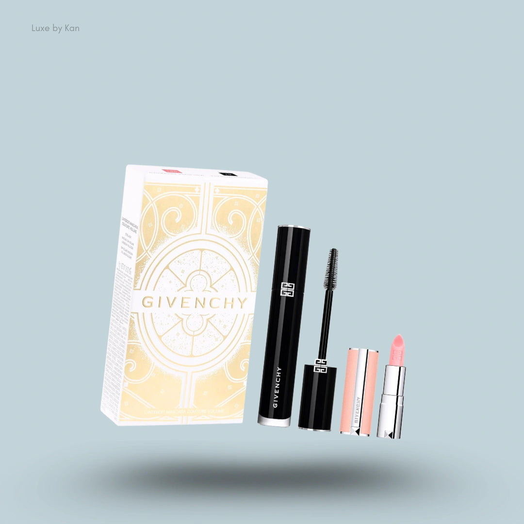Elevate your holiday gifting with the GIVENCHY L'interdit Mascara Gift, a luxurious makeup set featuring the L'Interdit Mascara in 01 and a mini Rose Perfecto Lipstick in 001. This elegant duo brings high-end beauty in a compact, travel-ready format, perfect for everyday wear or special occasions.