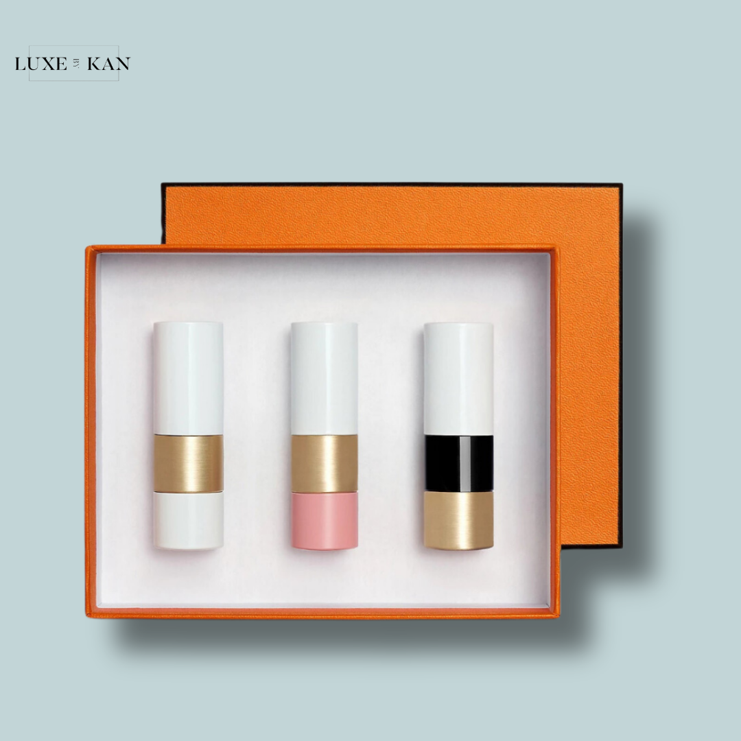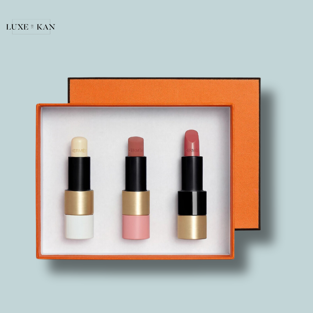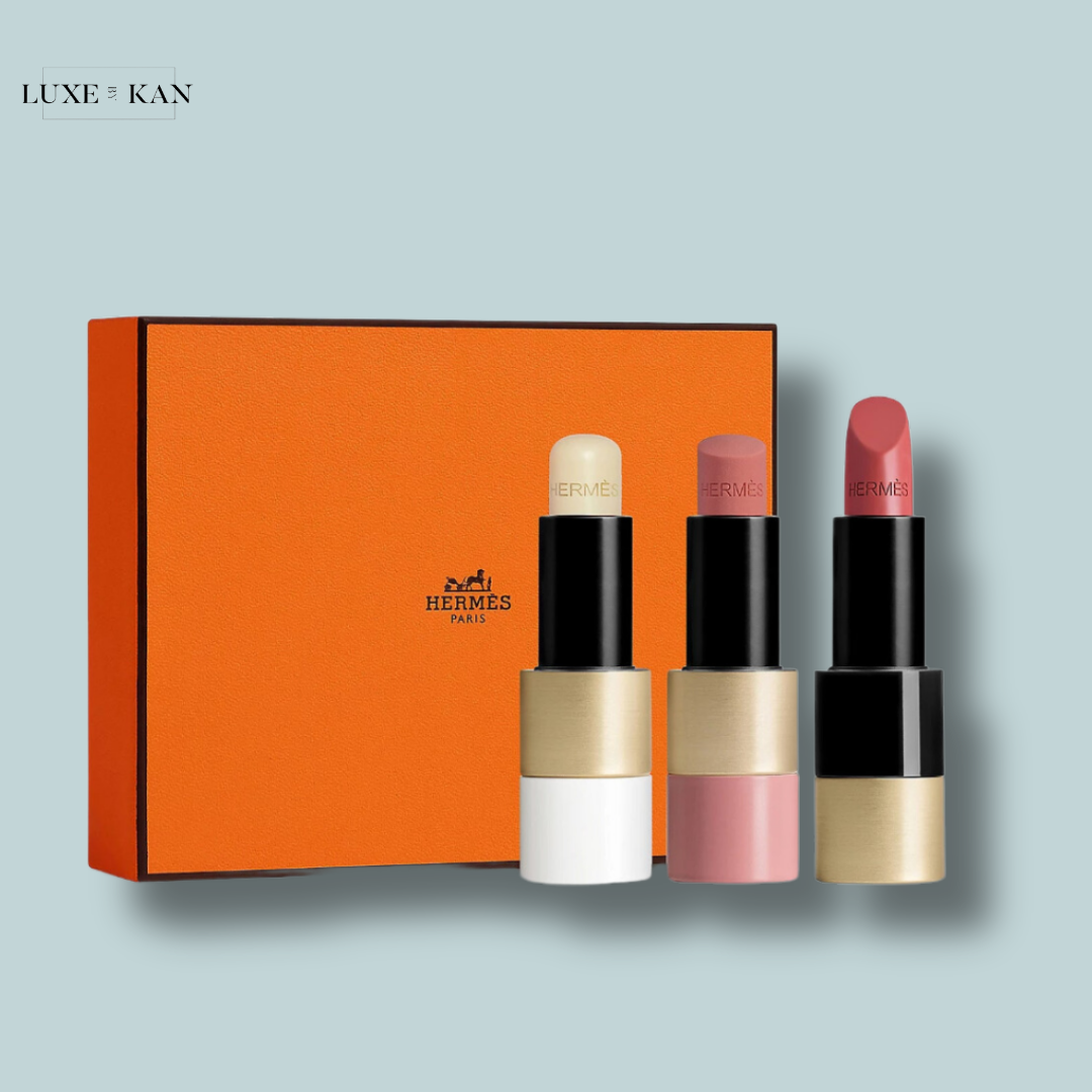 Includes: Rouge Hermès Lip Balm (3.5g), Rouge Hermès Satin Lipstick (3.5g), and Rose Hermès Rosy Lip Enhancer (3.5g).
