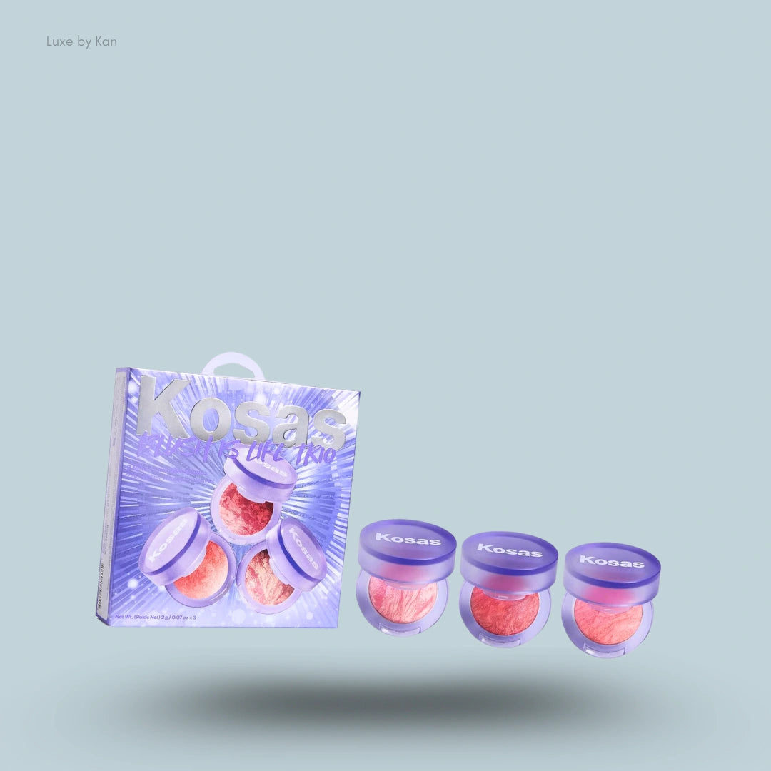 KOSAS Blush Is Life Trio offers a luxurious set of three silky smooth, baked blushes infused with squalane and hyaluronic acid. Designed in dimensional color duos, this trio delivers a natural, radiant flush while keeping skin hydrated and comfortable for all-day wear.