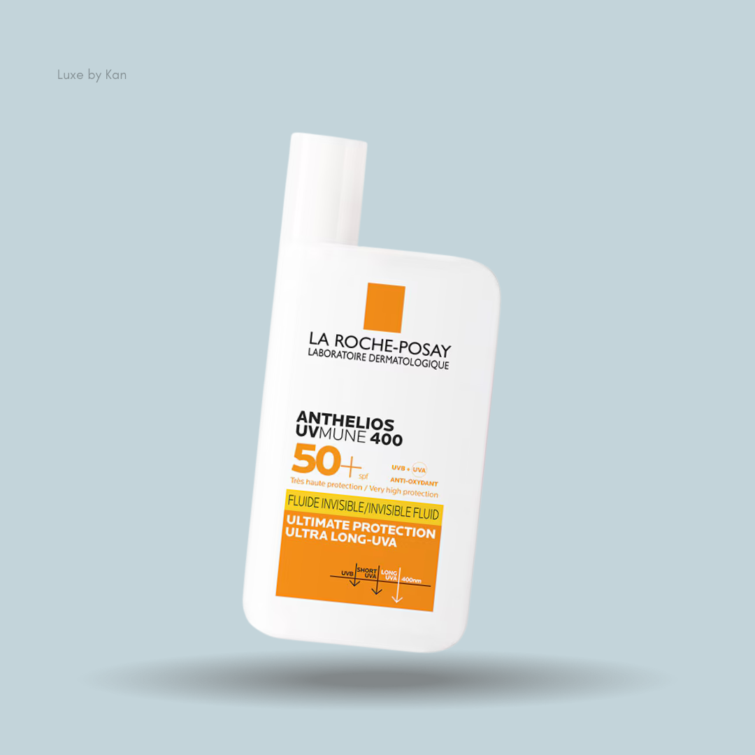 ANTHELIOS UVMUNE 400 INVISIBLE FLUID SPF50+ NON-PERFUMED : Featuring MEXORYL400, the most effective UV filter against deep, long-lasting UV rays, this sunscreen offers ultimate protection from UVB, UVA, and ULTRA LONG UVA, preventing deep cellular damage. It is tested on sensitive, reactive, and intolerant skin, suitable for all skin types and phototypes, and is fragrance-free.