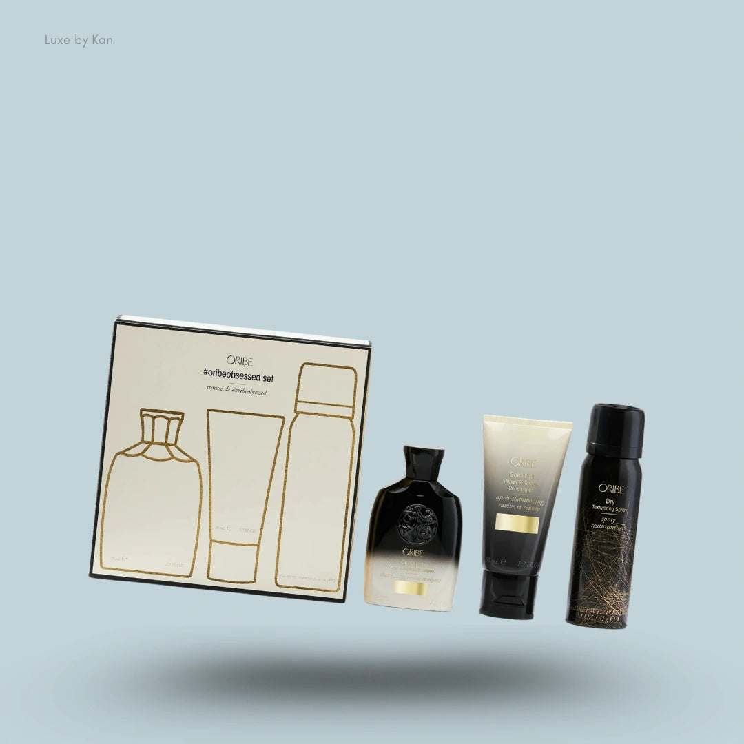 Elevate your routine with the Oribe Obsessed Kit, a curated trio of essentials designed to cleanse, condition, and enhance hair with luxurious care. Infused with restorative oils and advanced technology, this set helps deliver smooth, glossy strands while protecting against everyday stressors.