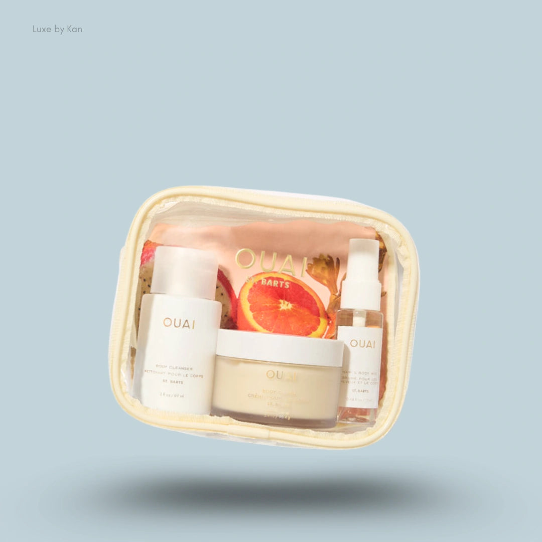 Ouai Wanna-Get-A-OUAI Travel Kit brings the luxury of a tropical getaway wherever you go. This limited-edition travel set features the St. Barts-scented Body Cleanser, Body Crème, and Hair & Body Mist, offering a refreshing, sun-kissed fragrance with every use.