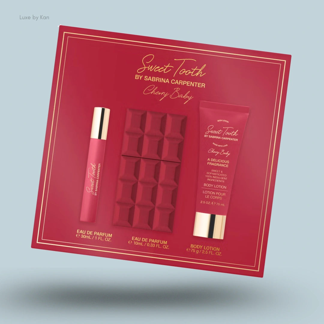 The Sabrina Carpenter Eau de Parfum Gift Set offers two captivating fragrance collections Cherry Baby and Sweet Tooth crafted for those who appreciate playful elegance and sensual warmth. This curated set includes full-size and travel-size eau de parfums, along with nourishing body lotions for a complete, indulgent experience.