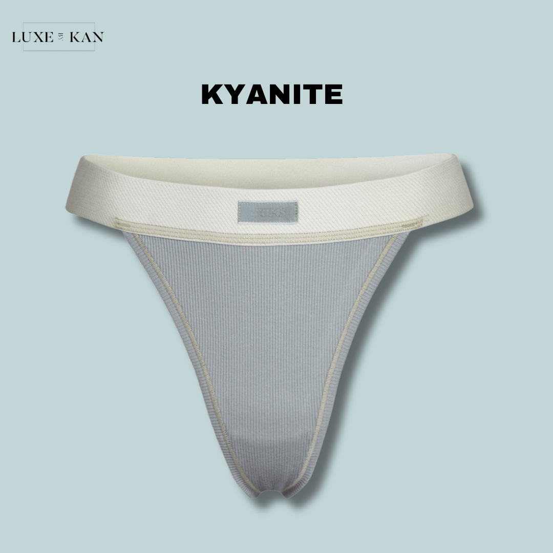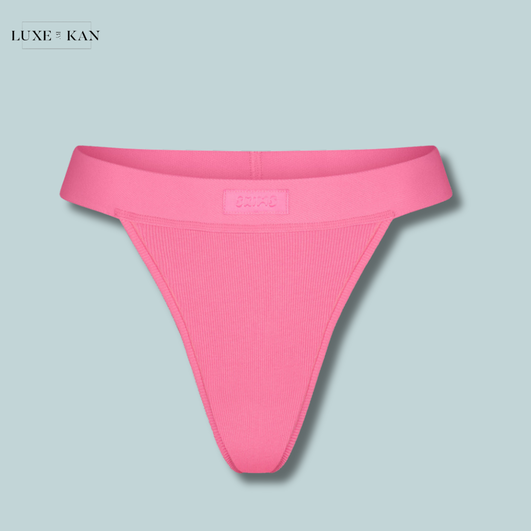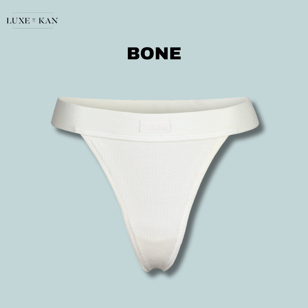 - High rise, wide elasticated waistband, high legs, V-string at back, low coverage at back, all-over ribbed texture
