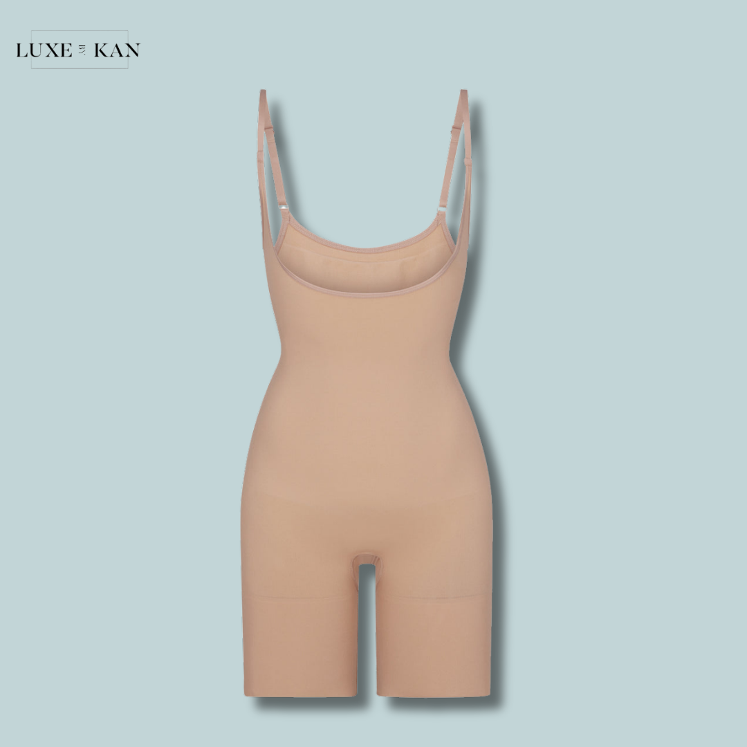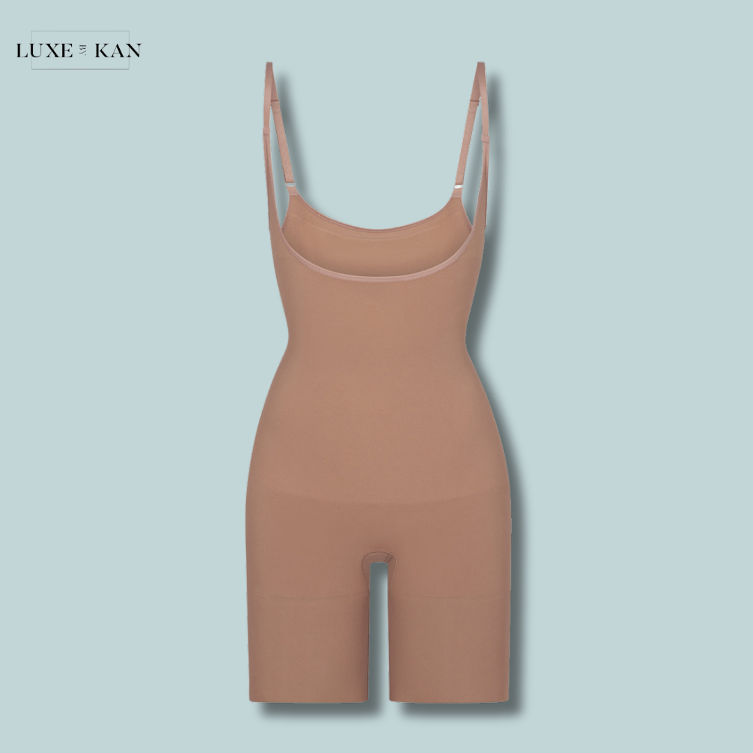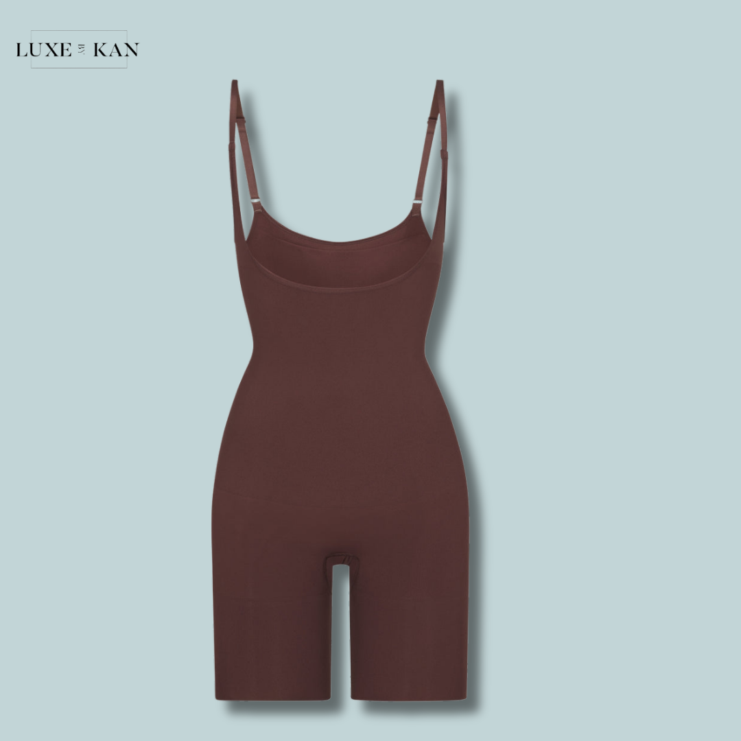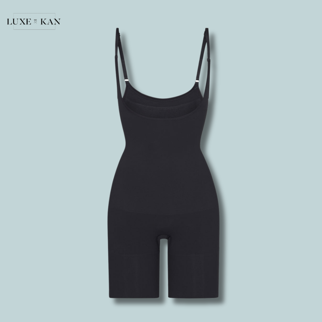 The ultimate solution for targeting your waist and accentuating your butt. This open-bust bodysuit hits at the mid-thigh and perfectly lifts your butt. Features elastic adjustable straps, double-ply compression on the thigh, mid-level compression along the core and waist, and an open gusset. Fits true to size.